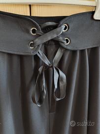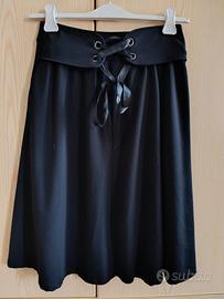 gonna midi nera con ampia fascia in vita e allacciatura a corsetto tramite lacci dietro.
