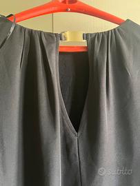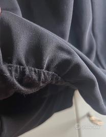 Blusa con maniche elastiche e top di tessuto doppio cucito insieme esterno lucido con scillo a V dietro