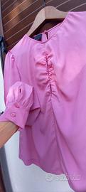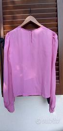 usata 1 volta sola. in ottime condizioni. bello il colore così acceso. in crepe di chine di misto seta. scollo tondo e doppia apertura a goccia sia davanti che dietro. quest'ultima chiusa da un piccolo bottoncino. maniche lunghe leggermente a sbuffo con polsino in fondo chiuso da 2 bottoncini. un capo prezioso, raffinato, versatile x diverse occasioni. la sera abbinata a una gonna seria, di giorno con un semplice jeans.