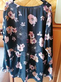 Blusa con collo a V, maniche a sbuffo, elegante.
