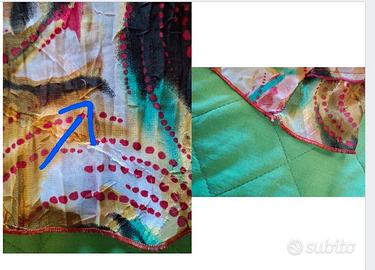2 difetti evidenziati nelle ultime 2 foto, invisibili a capo indossato, dato il tipo di tessuto. Il prezzo ne tiene conto.