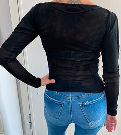 Elegante blusa nera con un design unico.