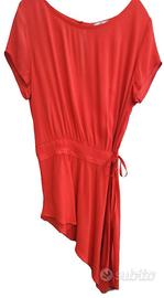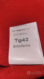 Linea particolare con laccetti per regolare l'ampiezza del giro vita, manica leggermente accennata. Due pannelli posteriori e tre bottoncini dorati creano un gioco di piacevoli aperture. Tessuto leggero.