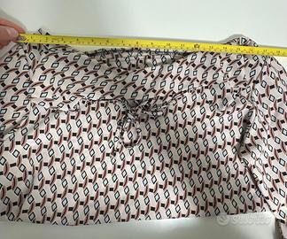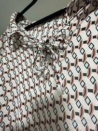 Stampa geometrica in stile retrò sui toni del beige, nero e bordeaux.