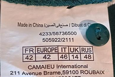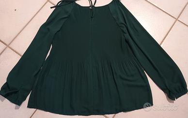 blusa verde scuro Taglia 46 Camaïeu maniche lunghe con apertura sulle spalle, in poliestere 100%, davanti la parte alta è plissé mentre la parte bassa è svasata. Nuova