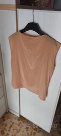 Blusa sottogiacca vero vintage fine anni '70. Smanicato misto cotone/seta, taglia M/L, taglio dritto con bottoncini sulle spalle. Colore albicocca, misure in foto. Top in condizioni ottime, leggero scolorimento sotto le braccia (foto).
