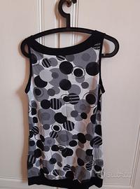 Bluse senza maniche marca Cache Cashe da donna, Taglia 4, in viscosa e elastan, ottime condizioni, disegni anni '70, da indossare sopra camicie o maglie per un outfit originale.