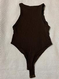 Body sfiancato con mutanda a perizona, smanicato, accollato, perfetto da indossare sotto ad una giacca stile tailleur e con indumenti a vita alta. Articolo della stagione estiva 2024. La parte alta fino a sotto al seno è rivestita al suo interno cosi da poterlo indossare senza reggiseno. È stata rimossa l’etichetta al suo interno.