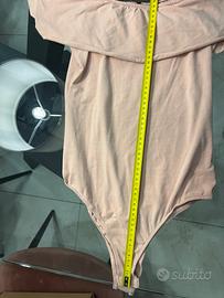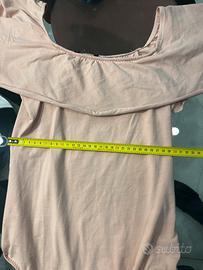 Body maglietta di colore rosa marca Alcott, scollatura con volant. 96%cotone 5%elastina. Taglia S in ottime condizioni . Misure lunghezza dà scollatura al cavallo 55cm Larghezza 30cm Capo elasticizzato