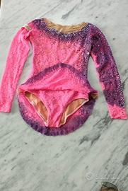 Body bambina elegante ginnastica ritmica , per gare e saggi , con svaroschi, realizzato interamente a mano