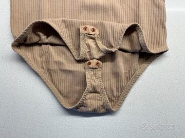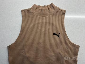 Bellissimo body di colore beige con logo nero della Puma, spalle scoperte e colletto chiusura con due bottoni come si vede nelle foto e scollatura sulla schiena a cerchio Taglia US M, UK 12 Marca Puma Materiale: 95% cotone 5% elastane Vendo in ottime condizioni praticamente nuovo usato solamente una volta per inutilizzo, esattamente così com'è nelle foto