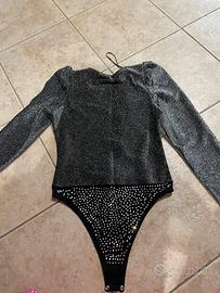 Body brillantinato a manica lunga con scollo