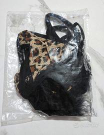 Set completino abbigliamento donna reggiseno mutanda colore leopardato.