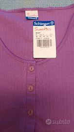 Body donna in caldo cotone, color lilla, taglia 44, marchio SCHIESSER, NUOVO mai usato. Maniche corte e 5 bottoncini sul davanti apribili, zona slip chiusa con 3 bottoncini a pressione.