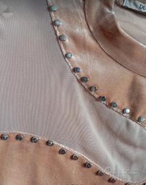 body in velluto beige con dettagli in velo e borchiette tonde. semplice e particolare allo stesso tempo. Mai indossato.