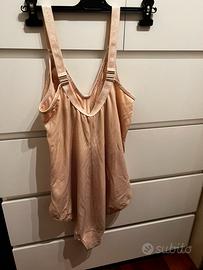 Body modellante color rosa cipria, con spalline regolabili e coppe rinforzate impreziosite da ricami floreali tono su tono. Tessuto contenitivo che sostiene e valorizza la silhouette, ideale da indossare sotto abiti o completi per un effetto elegante e femminile.