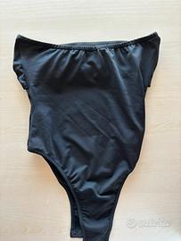 Body nero con spalle scoperte. Semplice ma elegante, con un punto luce al centro. Body nuovo di taglia XXS