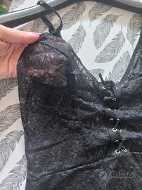 Body di pizzo nero, di tezenis. Scollatura e laccini regolabili. Usato un paio di volte ma come nuovo Veste un M, 42/44 Etichetta rimossa