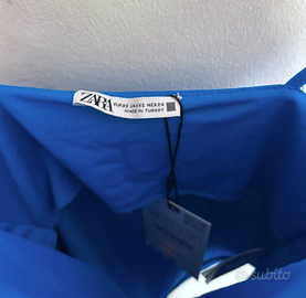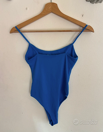 Body - top di poliammide blu con bottoni a pressione come chiusura. Zara. Taglia XS, nuovo con cartellino. Ottimo da indossare con jeans wide leg a vita alta o vita bassa.