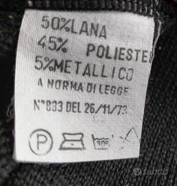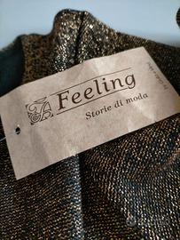 Body sottogiacca Feeling in lana nera con lurex oro, girocollo, manica lunga, taglia S, lunghezza cm. 71.