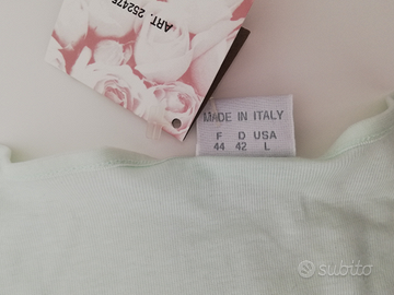 Può essere utilizzato anche come sotto giacca. È a mezza manica, con leggero ricamo al girocollo. Ha il cartellino, nuovo e mai usato.