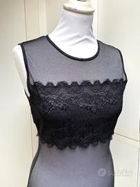 Completamente elasticizzato con pizzo sul seno, ideale x sotto giacca.