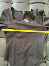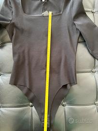 Bodysuit nero Modello sgambato Scollo a barca Elasticizzato Nuovi con cartellino