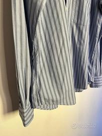 Camicia elegante Boggi Milano a righe blu su sfondo chiaro, modello classico con collo button-down e polsini regolabili.