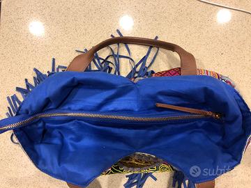 BELLISSIMA BORSA BOHEMIAN STYLE IN DIVERSI COLORI ZIP CHIUSURA TASCA INTERNA FRANGE IN PELLE CAMOSCIO.