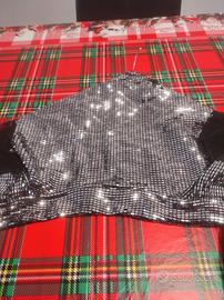 Bolero con strass, manica lunga velata. Taglia unica colore nero