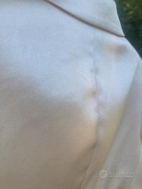 Elegante giacca corta dal taglio moderno color oro perlato marca Rinascimento. Comprata per un matrimonio a settembre 2025 ma mai indossata. pagata 109,90€. - Design corto e raffinato. - Collo a revers. - Maniche lunghe.