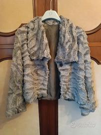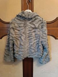 bolerino donna grigio con paillettes, elegante, giacchino corto, maniche lunghe, chiuso da un automatico, taglia S/M