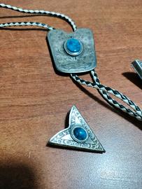 Bolo e puntali camicie vintage "El charro" anni '80 in german silver con turchesi, stile cowboy texano.