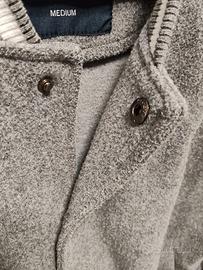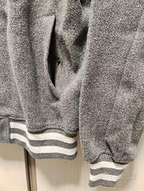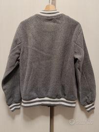 Vendo giubbotto modello bomber/varsity della marca Alcott. Taglia: M (Medium). Colore: Grigio mélange con dettagli a righe bianche su colletto, polsini e bordo inferiore. Stile: College americano, chiusura con bottoni a pressione (clip). Condizioni: In buone condizioni generali. Dettagli: Tasche laterali aperte, tessuto morbido e caldo con una texture particolare (vedi foto ravvicinate). Ideale per le mezze stagioni. Spedizione rapida e imballaggio curato. Per altre info o misure scrivetemi!