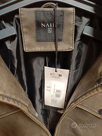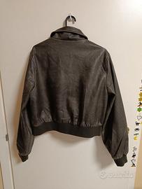 Bomber finta pelle foderato con tasche con cerniere, chiusura a clip, taglia indicata XL ma veste L, perfetto x vestibilità più over su una 40/42, colore lavaggio vintage cachi