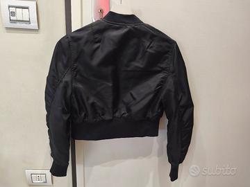 Bomber Crop Bershka – Nero (Taglia XS) Vendo intramontabile bomber nero firmato Bershka, taglio corto (crop), perfetto per un look urban e versatile. Taglia: XS (EUR XS / USA XS / MEX 24). Caratteristiche: Tessuto satinato leggermente imbottito, chiusura con zip robusta e tasche frontali con bottone a pressione. Polsini e fondo in maglia elastica. Condizioni: Ottime, come nuovo. Stile: Ideale da abbinare a jeans a vita alta o pantaloni cargo.