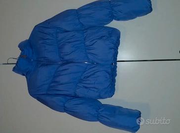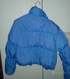 Piumino corto imbottito color azzurro pastello.
