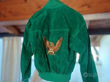 Bomber in pelle scamosciata Pekary . Nuovo mai usato, con cartellino. Capo vintage, Made in Italy, straordinario per qualità e immagine. Colore verde smeraldo brillante. Unisex . Taglia 44 . Prezzo 150 euro.