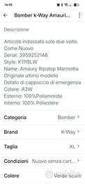 Bomber originale k-Way veramente usato solo due volte molto bello.