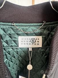 Vendo bellissimo bomber Maison Margiela originale, colore nero, design minimal e ricercato con dettagli iconici del brand. Capo premium con zip metalliche personalizzate, interno trapuntato verde e signature stitch sul retro. Presente anche foto cartellino con prezzo retail originale. Dettagli: * Brand: Maison Margiela * Made in Italy * Colore: Nero * Modello bomber / jacket * Chiusura con zip frontale * Tasche con zip e tirazip metallici * Interno trapuntato verde * Collo e polsini in maglia elasticizzata * Iconica cucitura bianca sul retro * Cartellino presente con prezzo originale €1.190 * Design pulito e ricercato laglia / Fit: Taglia 48 (fit indicativamente L 1 XL a seconda di come si desidera vestire) Misure circa: * Petto: su richiesta * Lunghezza: su richiesta * Manica: su richiesta Condizioni: ottime condizioni generali, capo tenuto molto bene senza difetti evidenti. Perfetto per outfit luxury, streetwear, minimal e smart casual.