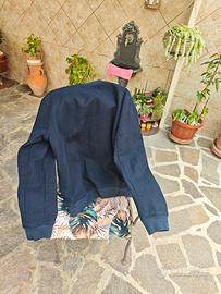 Vendo bomber modello College della marca Bonobo Jeans due tasche laterali due dentro il bomber il bomber della marca Bonobo Jeans Una marco che crea buon prodotto di alta Qualità dentro tutto foderato Jens 👖 fuori tipo lana colore blu note . Vendo perché stretto per me .