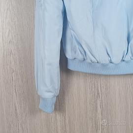 Splendido bomber celeste polvere di Pimkie, leggermente imbottito con fodera trapuntata, ideale per le giornate primaverili o le serate estive. Il tessuto ha una bellissima finitura satinata che lo rende super trendy.