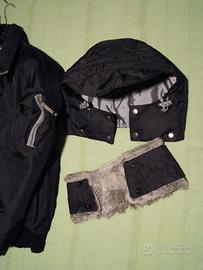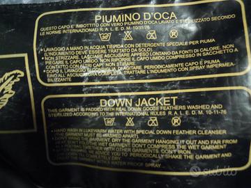 Come nuovo. Imbottitura in vero piumino d'oca, con cappuccio staccabile e collo di pelo di coniglio staccabile. Colore nero con interno e rifiniture grigio chiaro.