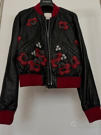Retail 540€ di grande qualità Pinko nero con colletto e polsini in maglia 2 tasche frontali bellissima lavorazione di fiori ricami e perline nuovo ma usato! Si consegna solo a mano con gruccia e copri abito Pinko