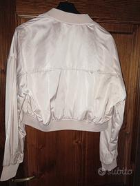 Modello: Taglio bomber cropped (corto in vita) con bordi elasticizzati e chiusura a zip.