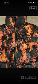 Bomber shein nero corto con cerniera con fantasia fuoco con fiamme.taglia XS Nuovo esattamente come in foto.
