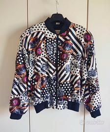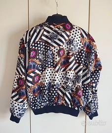 Giacca bomber vintage anni 80 Jacqueline Ferrar con bellissimo design eccentrico e originale a righe diagonali e pois, fantasia floreale e carrozze reali Con spalline interne 2 tasche Realizzato in materiale leggero, composizione: Esterno: Poliestere Fodera: Nylon Bordi: Acrilico Taglia unica, perfetto quindi anche unisex, veste comodo, allego anche le misure precise che potete vedere pure in foto: - Lunghezza: 65 - Ascelle: 60 - Spalla: 58 #jacket #80s #1980s #retro #multi #multicolor #colors #onesize #stampa #design #pattern #zip #cerniera #giacchino #collezione #moda #fashion #stile #raro #introvabile #arte #art #nobiltà