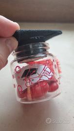 Bomboniere o confettate per Laurea, di vetro con decorazioni rosse e con tappo in sughero a forma di cappello di Laurea. Vendo escluso di biglietto e confetti.