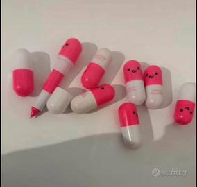 Vendo penne a forma di rossetto, a forma di capsule e con portachiavi , a forma di dispenser sapone, a forma di caramelle, Portafoto con tartaruga o portachiavi in resina a forma di hamburger super carine e originali, come pensierini, bomboniere o gadget. ✔️ Design creativo e femminile ✔️ Ideali per scuola, ufficio o astuccio ✔️ Ottime anche come idea regalo ✔️ Scrittura fluida Condizioni: nuove Colore inchiostro: nero e blu 🖊️ Penne a forma di capsula pillola Totale 10 pezzi misti o uguali Carine anche da regalare come gadget per feste di compleanno! In regalo anche bustine per incartarle! Se volete vi mando anche delle buste per incartarle!