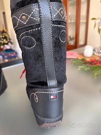 Stivali da neve tipo moon boot di Tommy Hilfiger caldi di pelo tipo cavallino neri